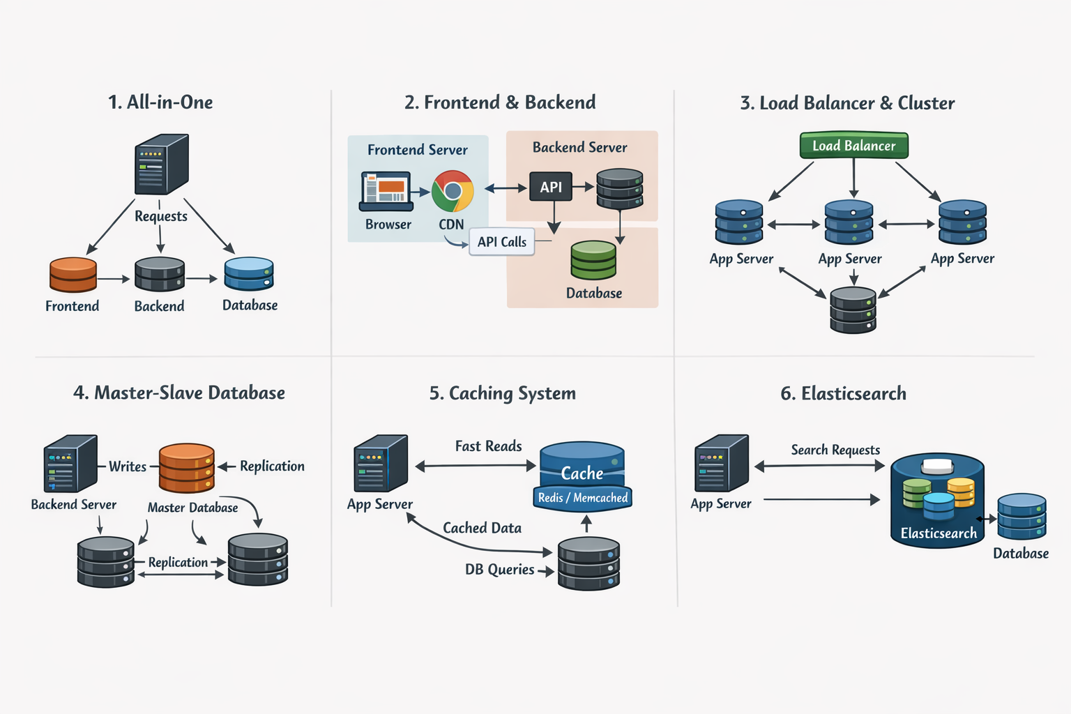 A scalable system evolves through several stages. Each stage comes with different trade-offs, so you should choose the approach that best fits your business needs.